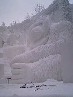 The old ladies next to me are worried about the people still at the snow festival. "Poor things! The people will be the snowmen!"